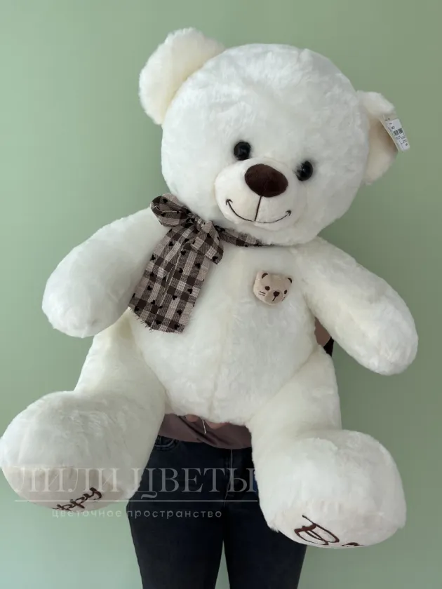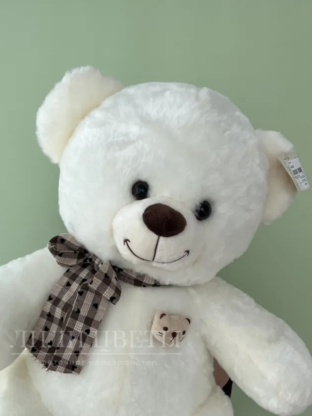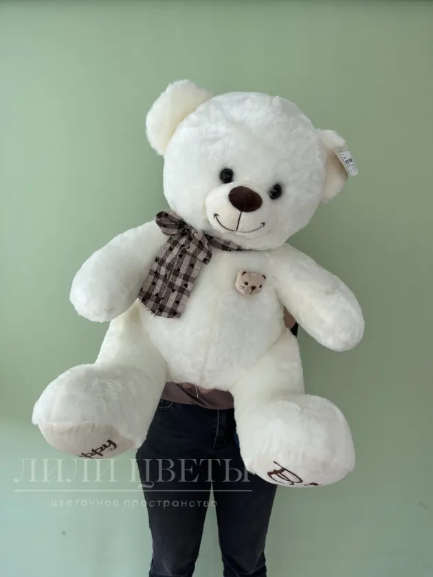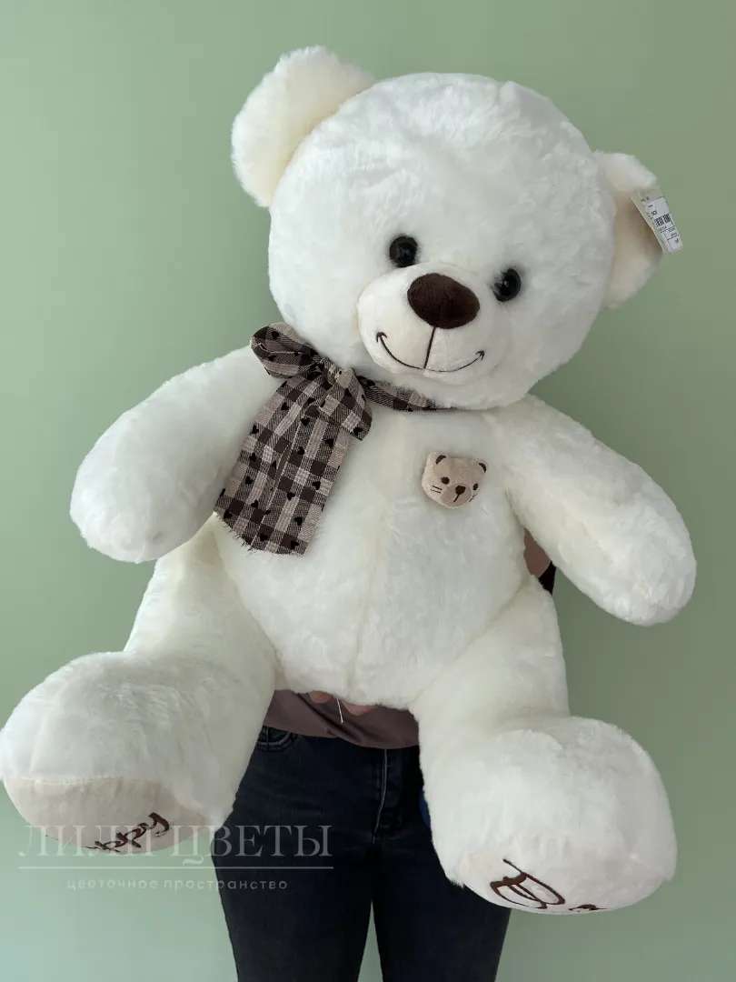 Белый мишка с клетчатым шарфом