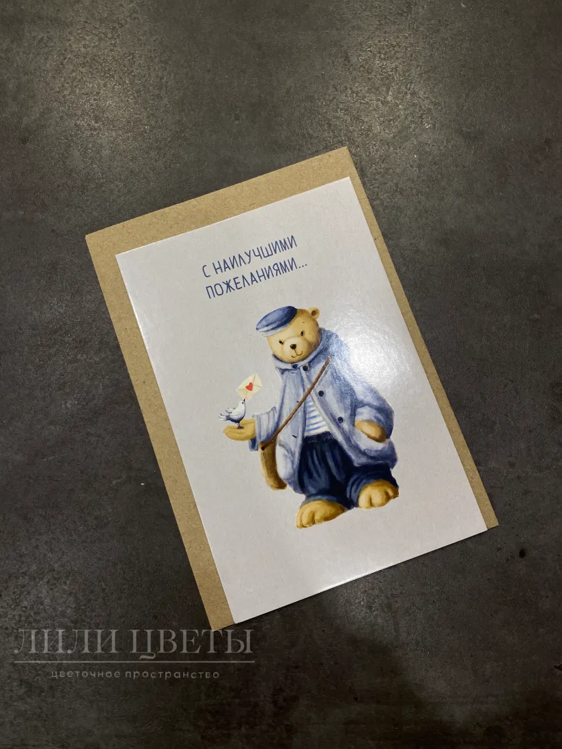 Открытка с крафтовым конвертом «С наилучшими пожеланиями..»