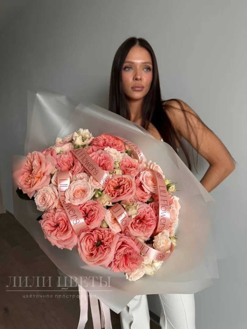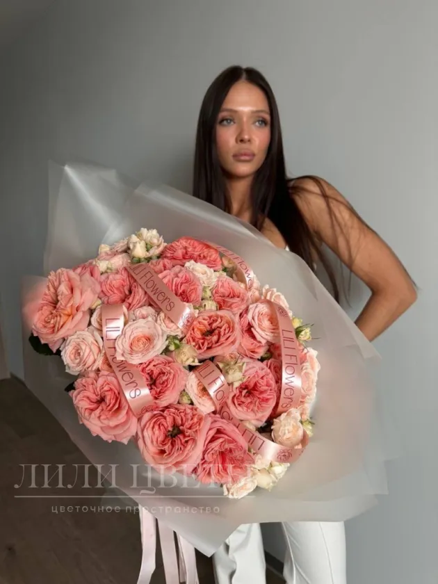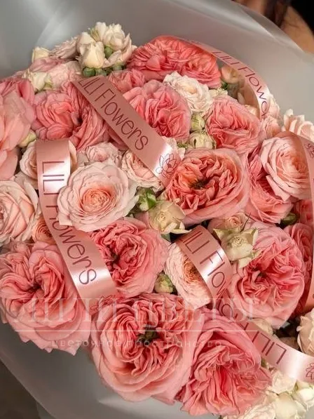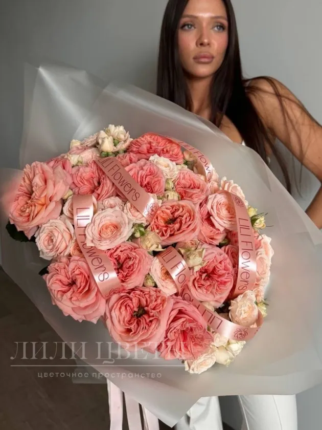 Сборный букет из пионовидных и кустовых роз