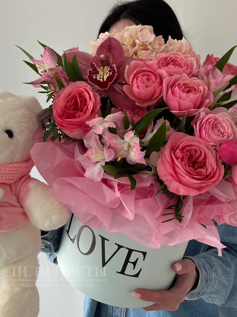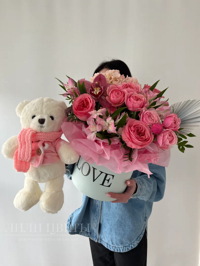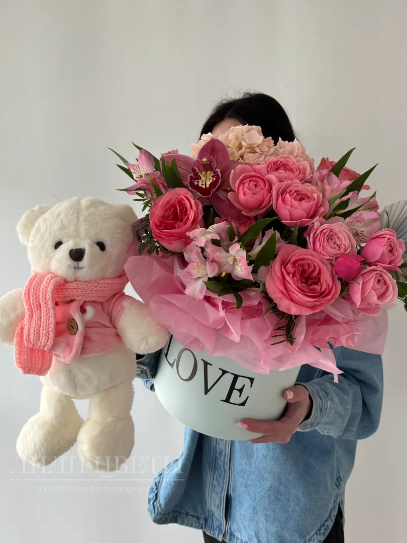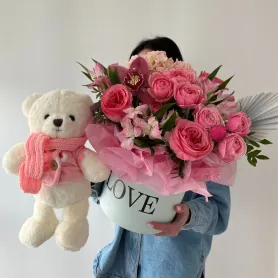 Комбо-набор из нежной композиции с мягкой игрушкой