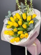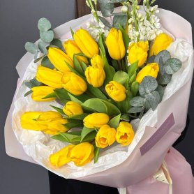 Сборный букет из тюльпанов и маттиолы «Весенний калейдоскоп»