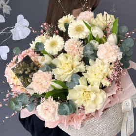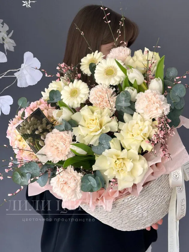 Сборная корзина в нежных тонах «Мягкое облачко»