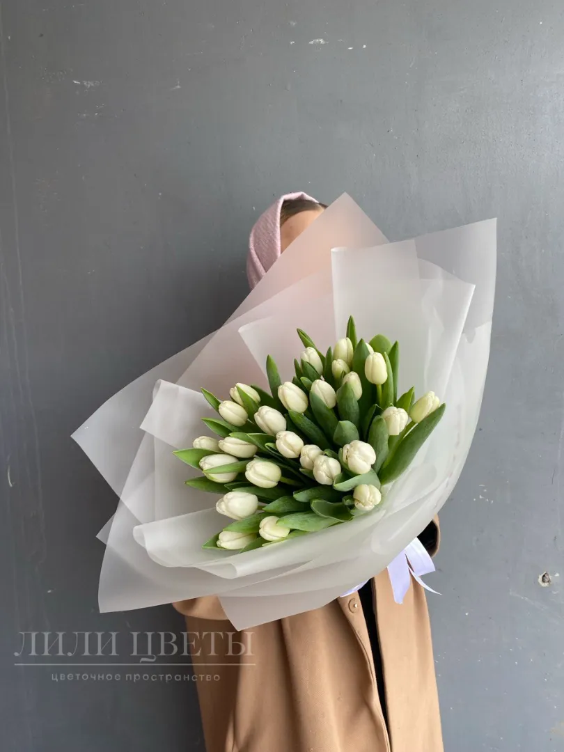 В составе 25 белых тюльпанов