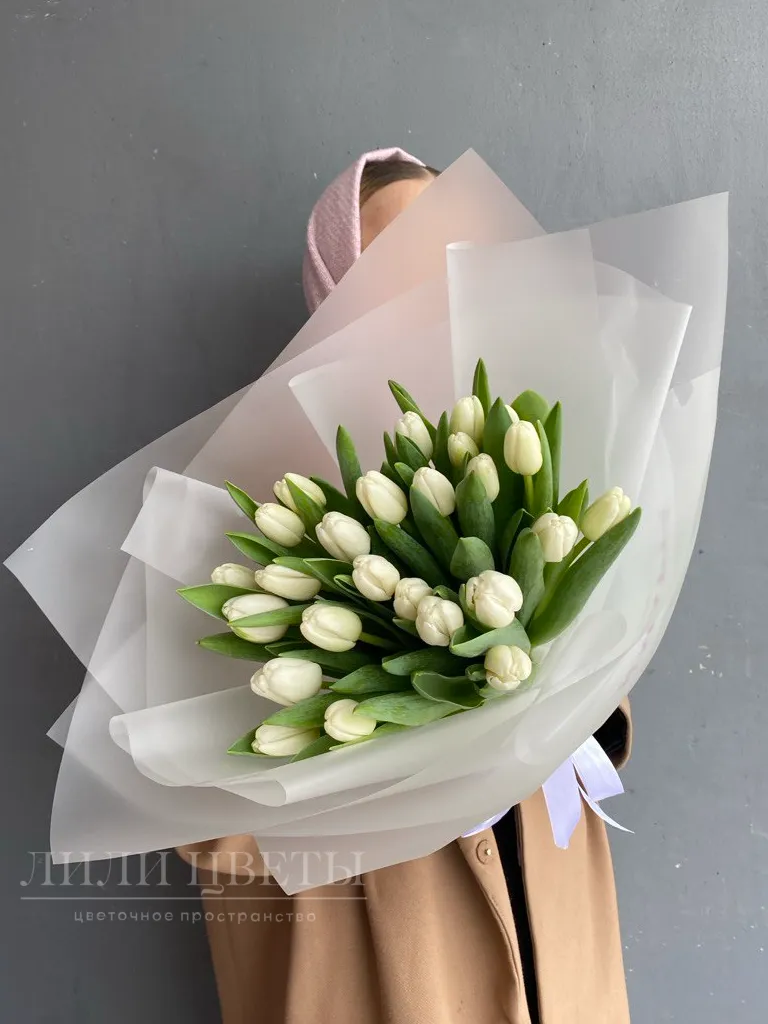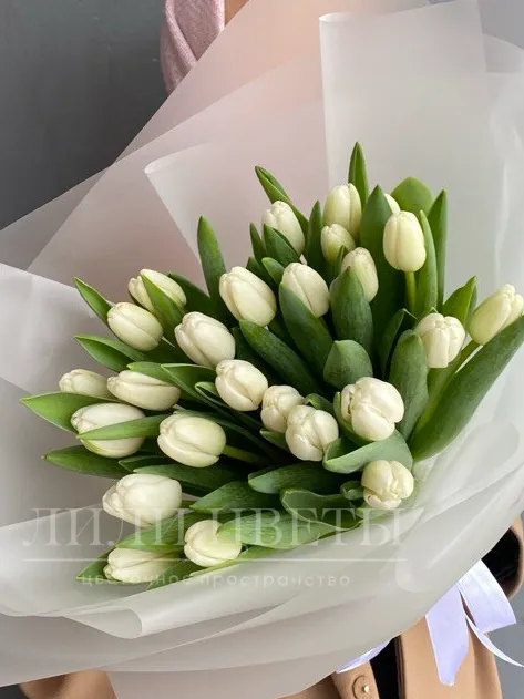 Букет из 25 белых тюльпанов