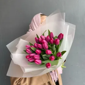 В составе букета 25 розовых тюльпанов