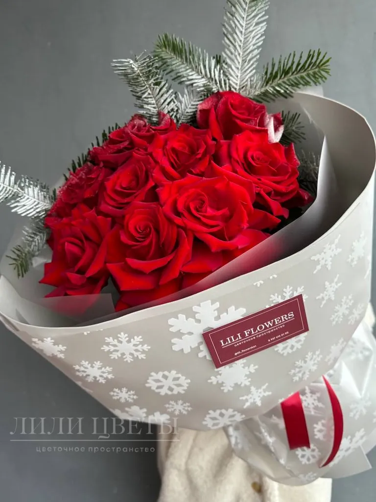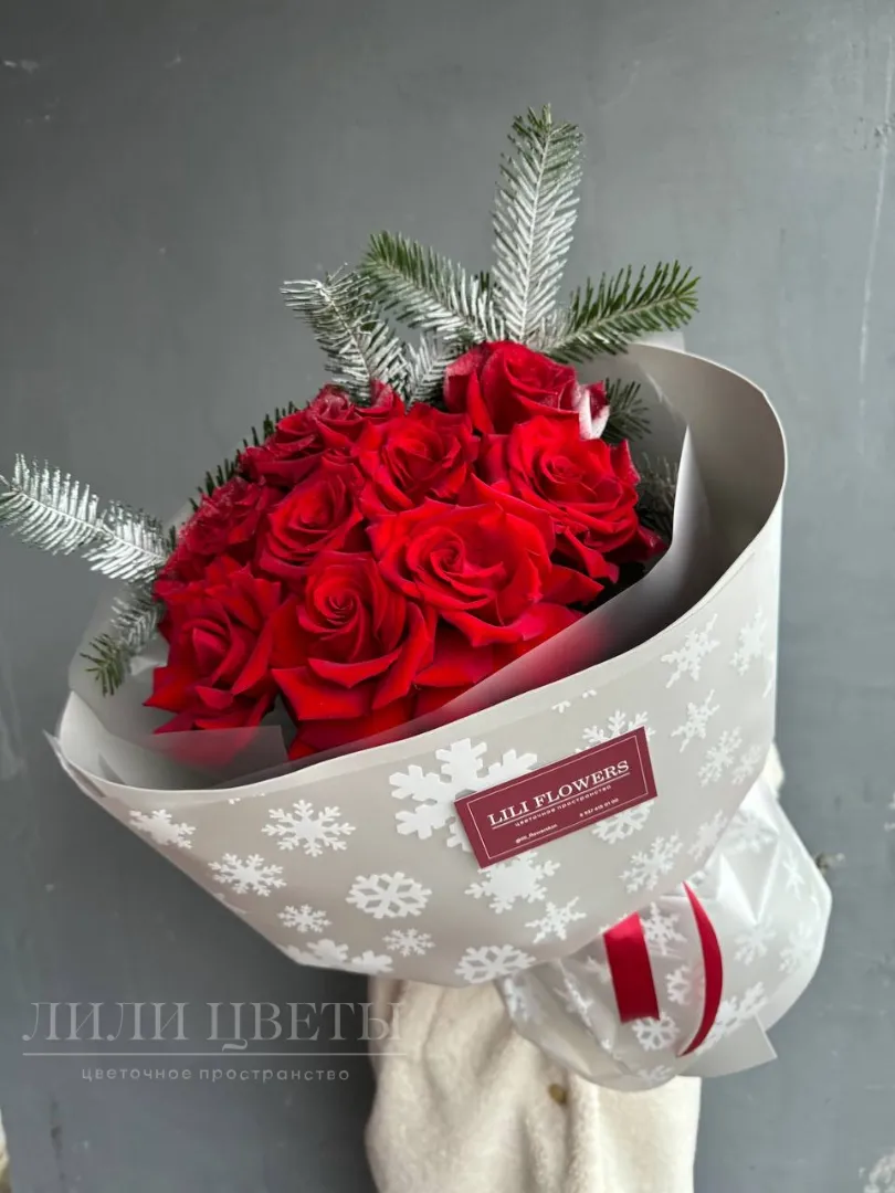 Новогодний букет из ажурных роз и хвои