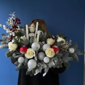 Композиция в красных тонах с шарами,свечами и розами