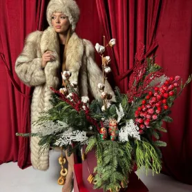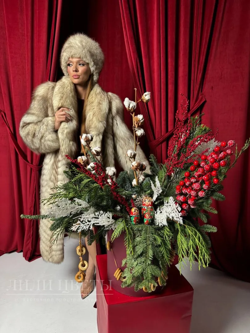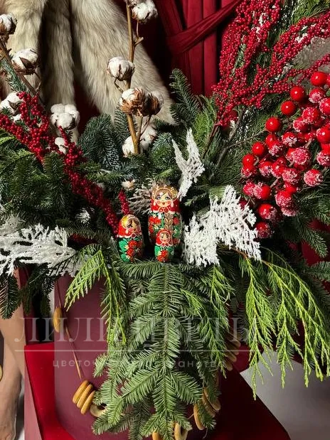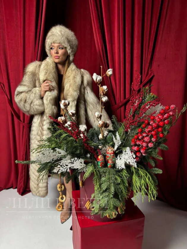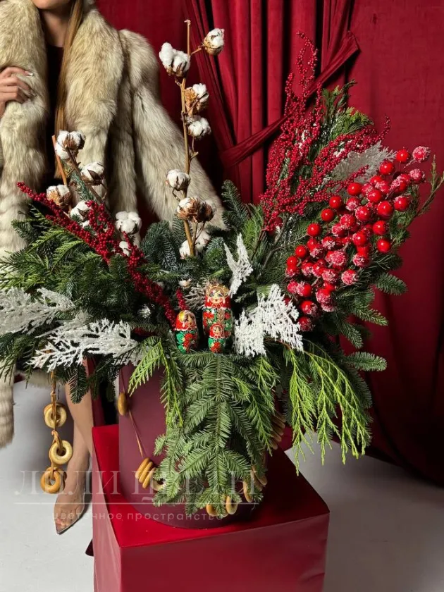 Композиция в стиле «Russian Girls» с хвоей и хлопком