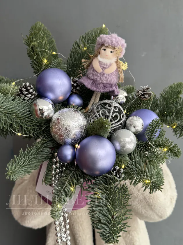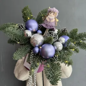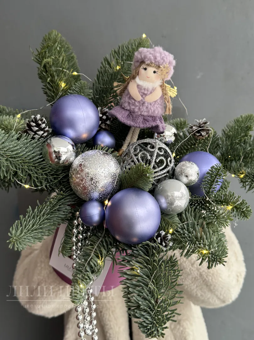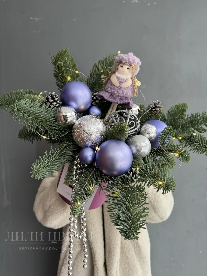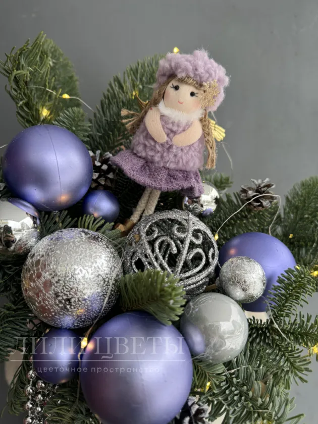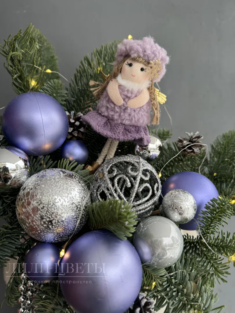 Новогодняя композиция из нобилиса, шаров и ангелочка