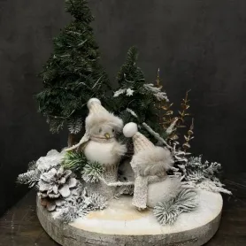 Новогодняя композиция на спиле с хвоей и снеговиками