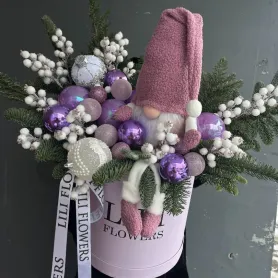 Новогодняя композиция в сиреневых тонах с гномом