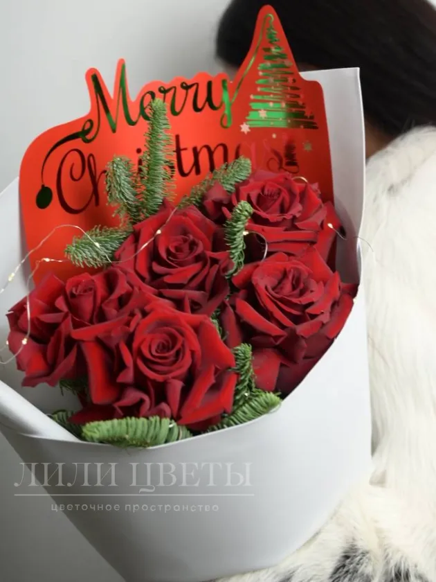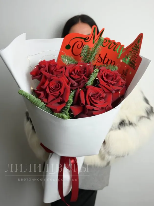 Букет из ажурных роз, нобилиса с гирляндой