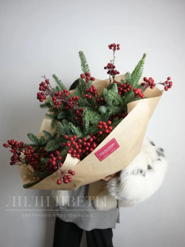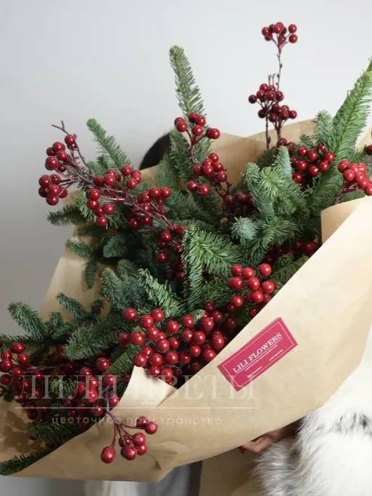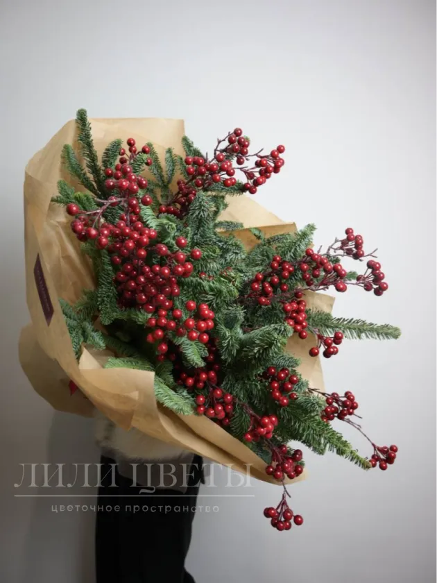 Букет из нобилиса с искуственными ягодами в крафте