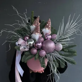 Новогодняя композиция в розовых тонах с гномиками