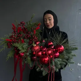 Стильная композиция в красных тонах с бусами