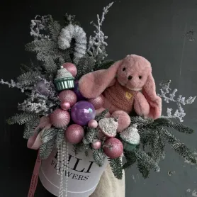 Новогодняя композиция с игрушкой зайчиком