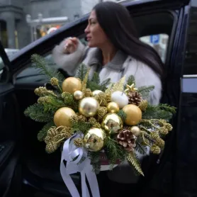 Новогодняя композиция с золотыми шарами