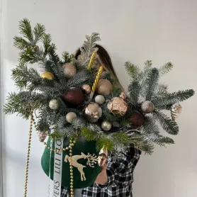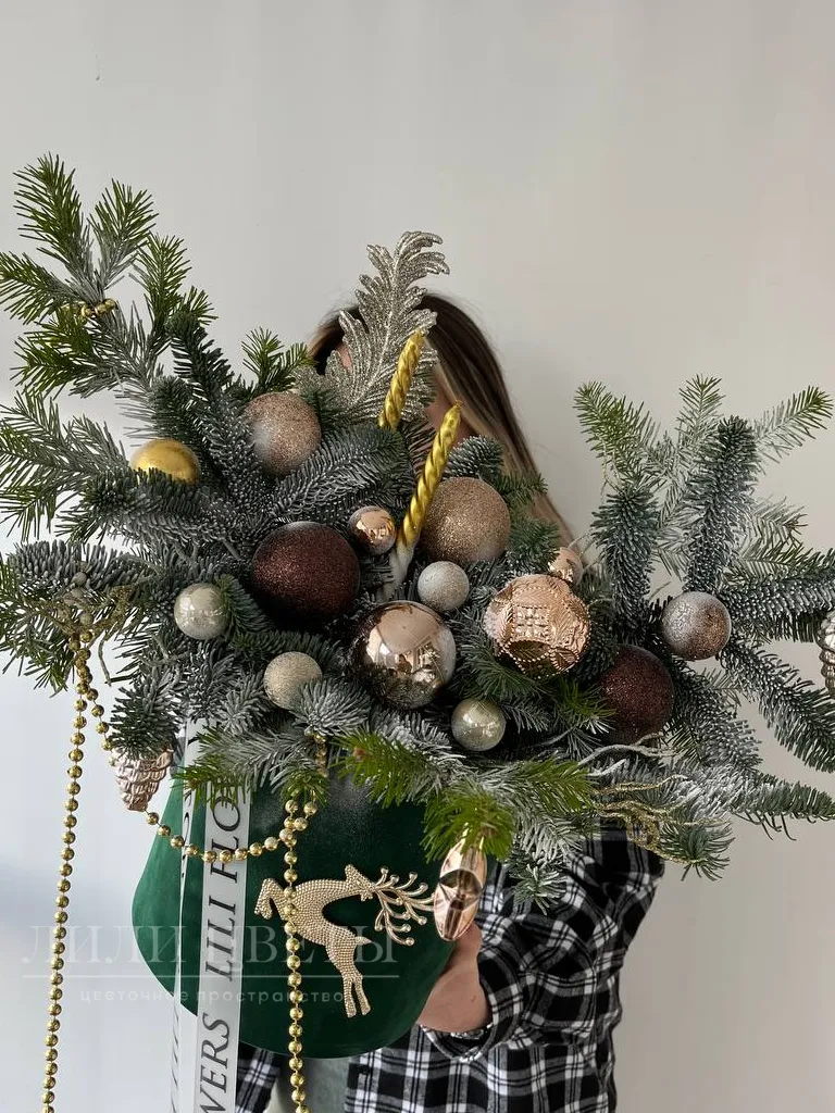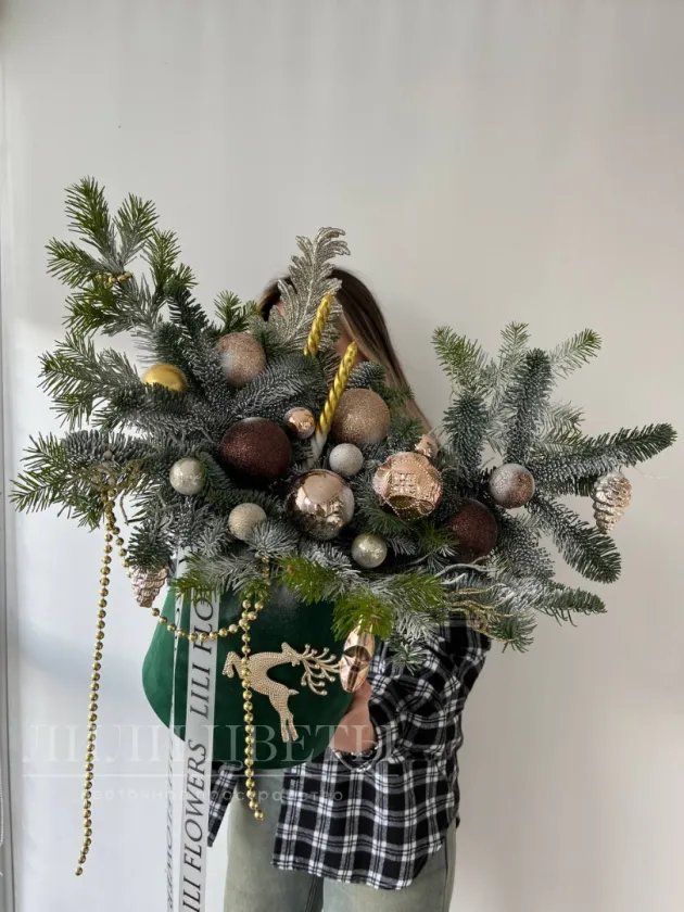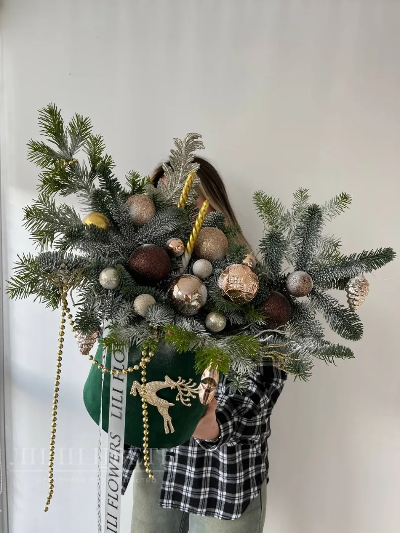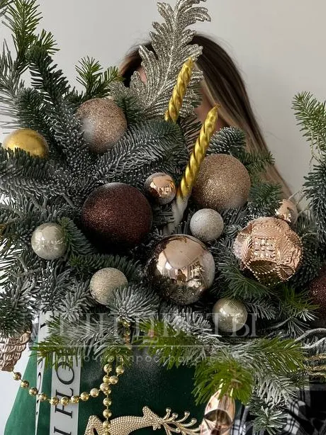 Новогодняя композиция в золотистых оттенках