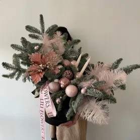 Новогодняя композиция в розовых оттенках