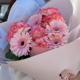 Сборный букет из ажурных роз и гербер