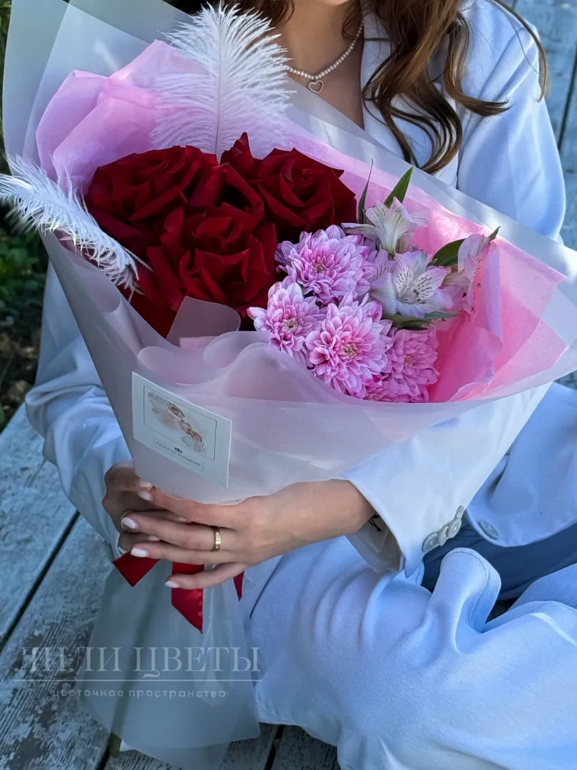 Букет из Ажурных роз, альстромерии и хризантем