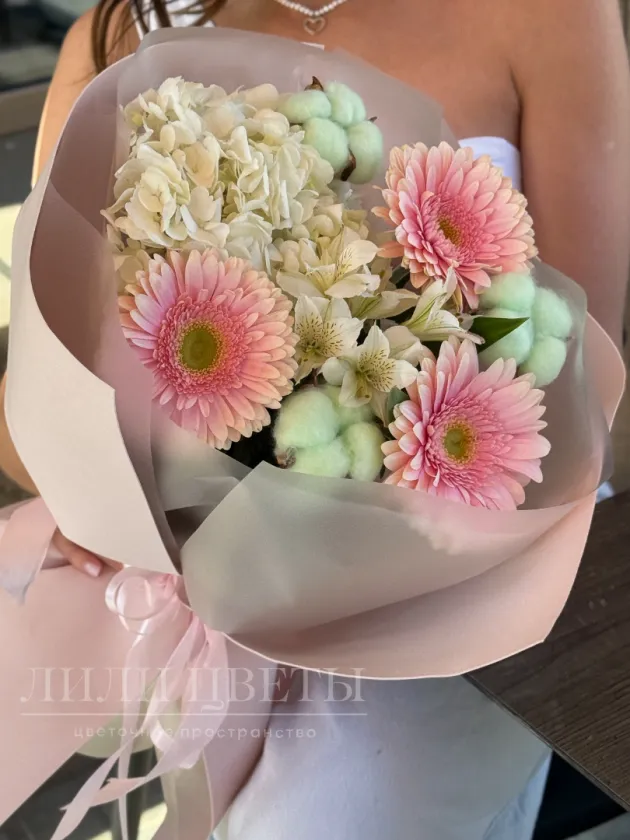 Сборный букет из гортензий, альстромерий и гербер