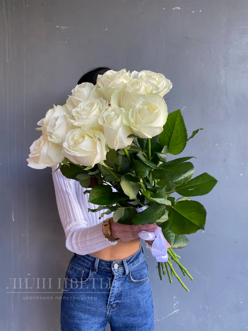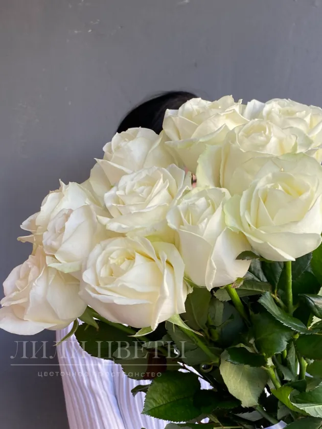 Монобукет из белых роз под ленту