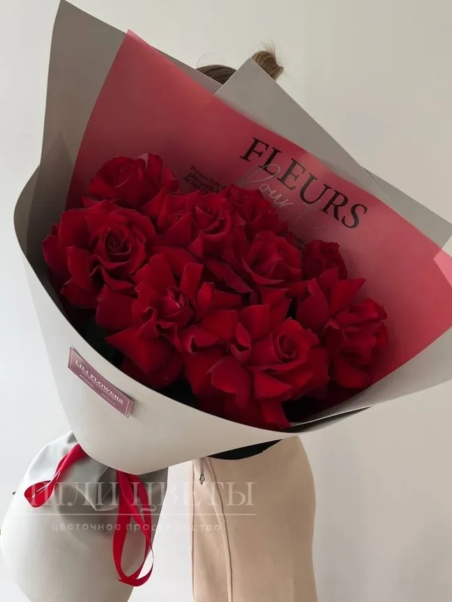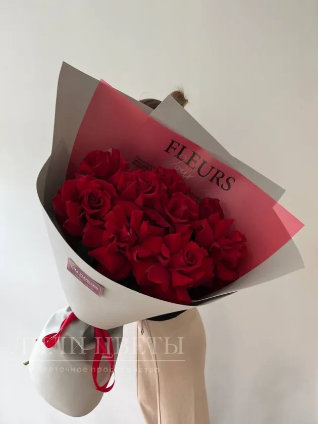 Букет из метровых роз в сером оформлении