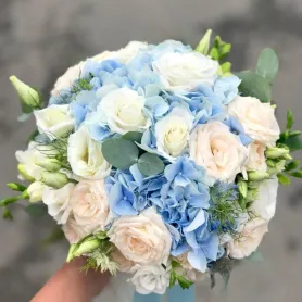 Свадебный букет из гортензии и кустовых роз
