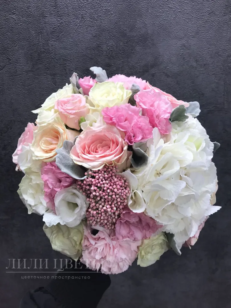 Свадебный букет из роз с эустомой