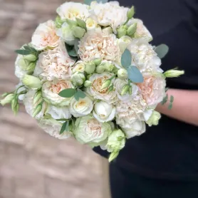 Свадебный букет из кустовых роз и гвоздик