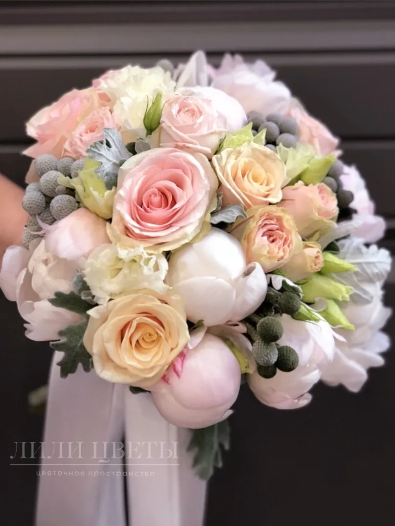Свадебный букет из роз с эвкалиптом