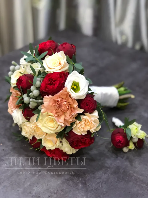Свадебный букет с бутоньеркой