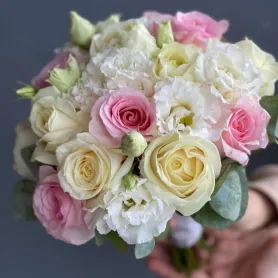 Свадебный букет и роз с эвкалиптом